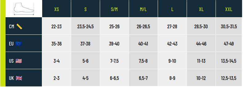 >> Faites défiler le tableau horizontalement pour voir plus de pointures.