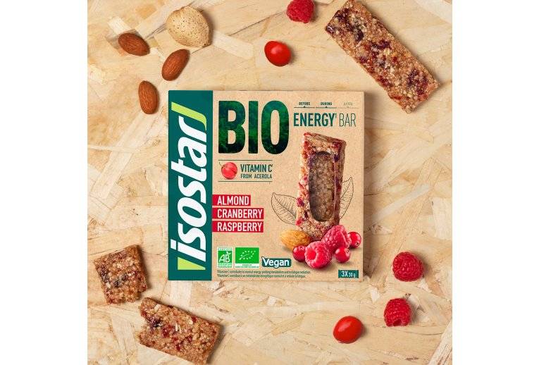 Issue de l’agriculture biologique, la barre Isostar Energy Bar saveur amandes, cranberry et framboise vous offre de quoi surmonter vos épreuves sportives.