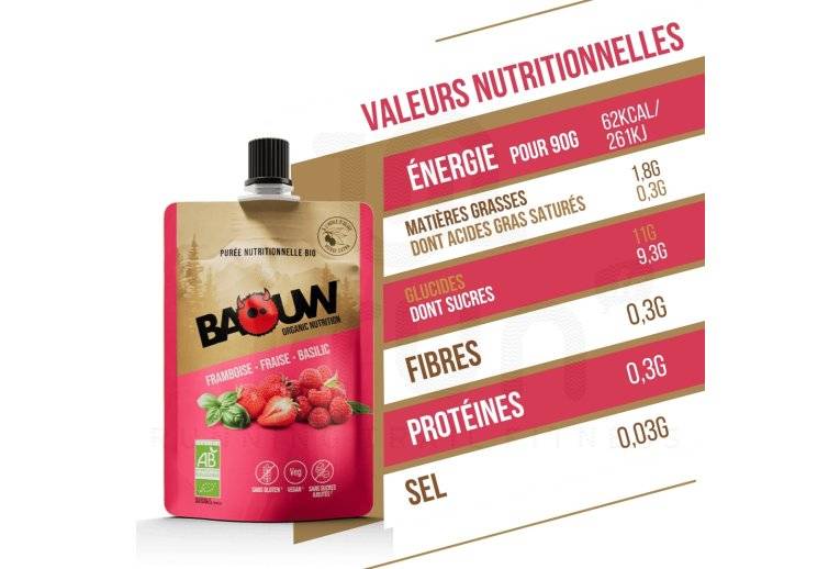 Baouw - Purée nutritionnelle bio - Framboise - Fraise - Basilic