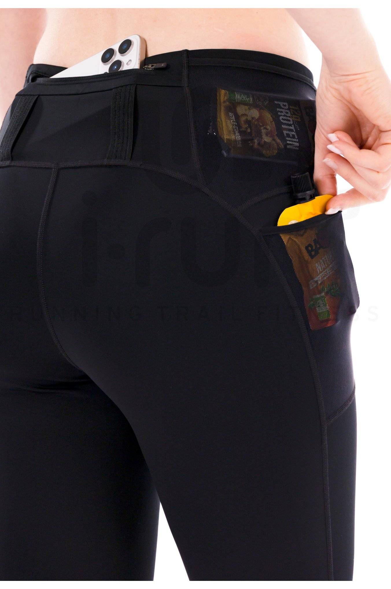 La ceinture ajustable à cordon de serrage assure une tenue personnalisée, tandis que la poche zippée et en mesh accueillent vos essentiels sans gêner vos mouvements.
