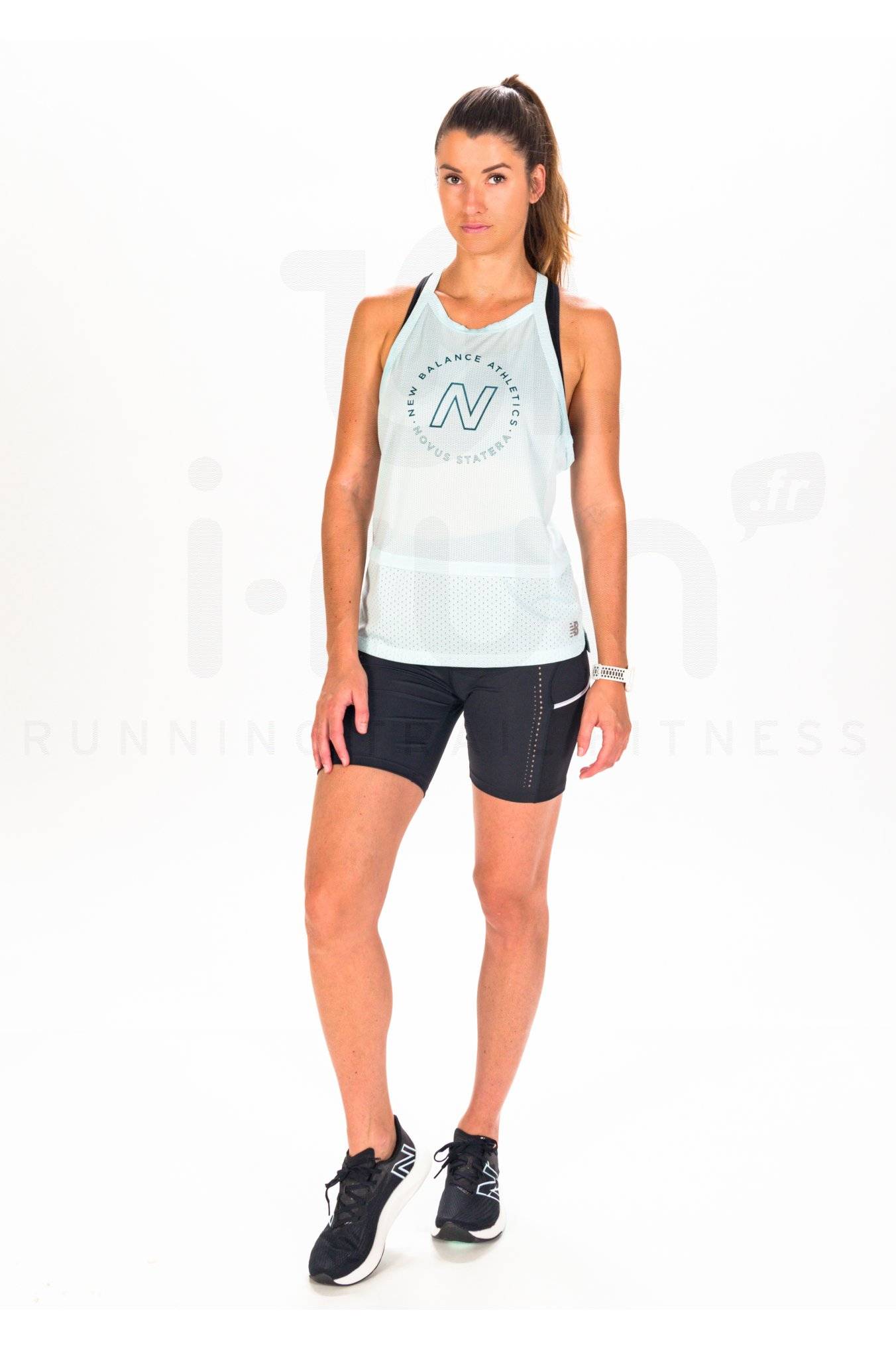 Le débardeur New Balance Printed Impact Run Hybrid pour femme et son poids plume vous accompagnent lors de vos sessions de running estivales.