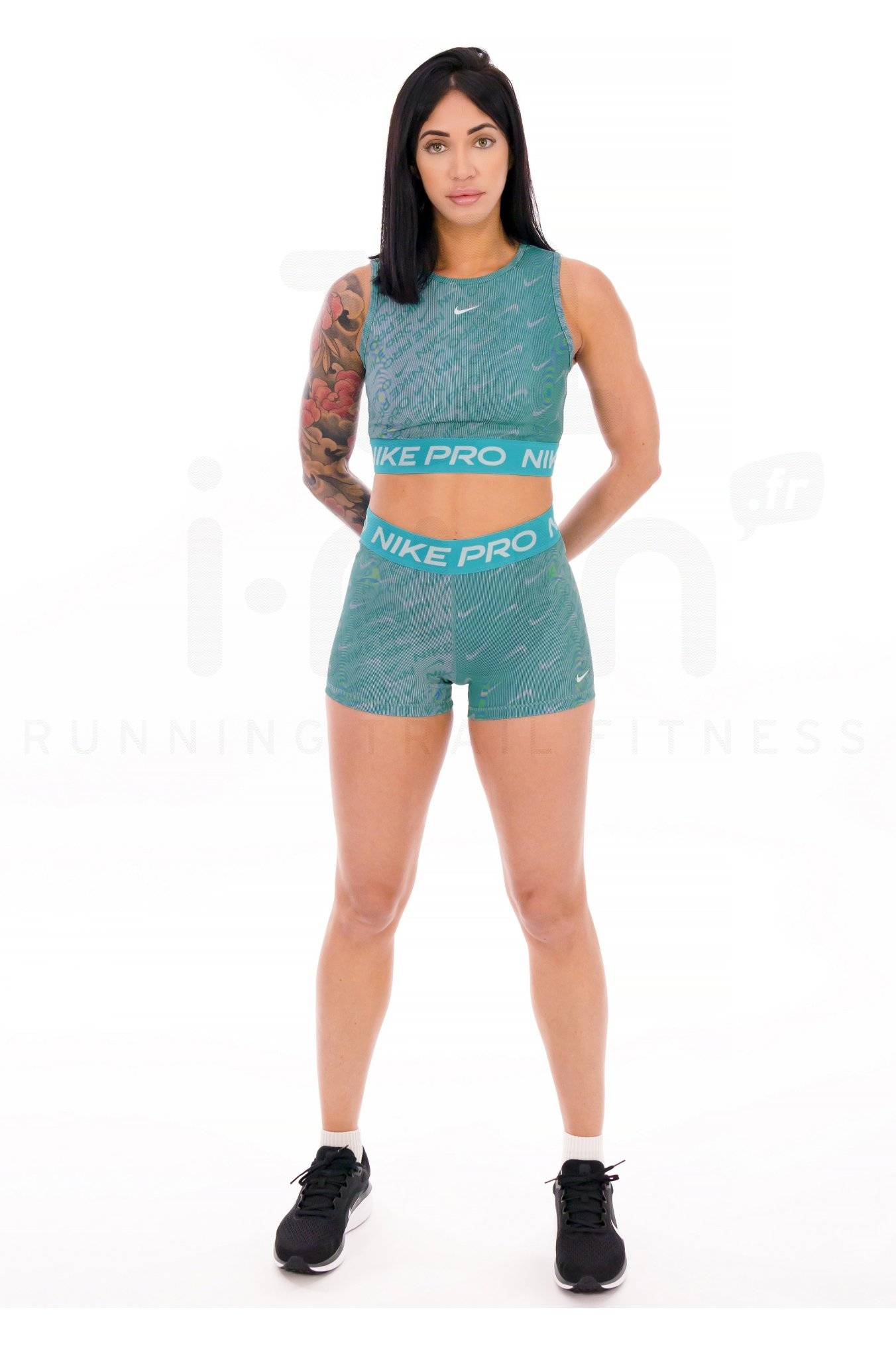 Le débardeur court femme Nike Pro AOP vous assure du confort lors de vos séances sportives estivales.