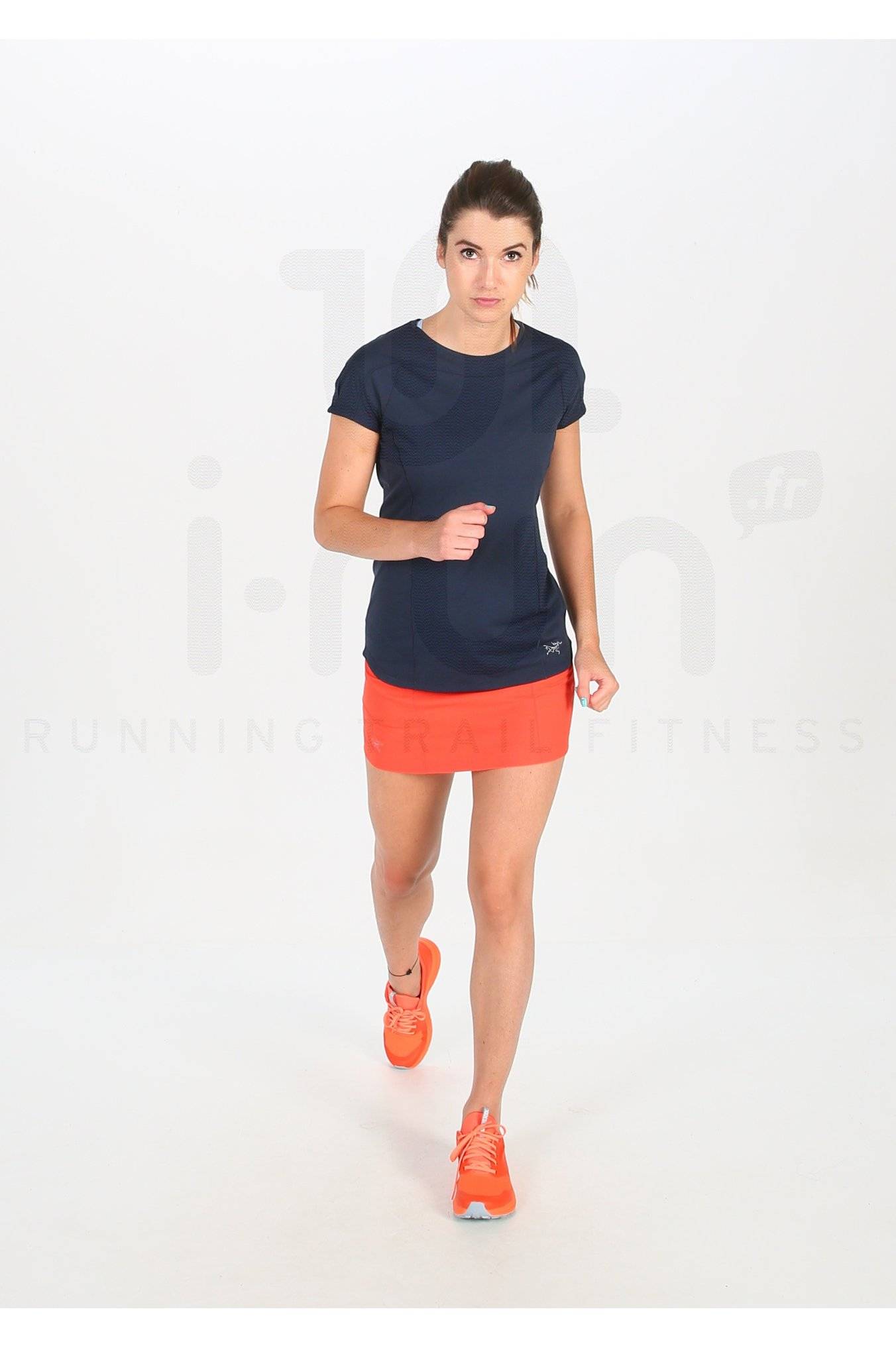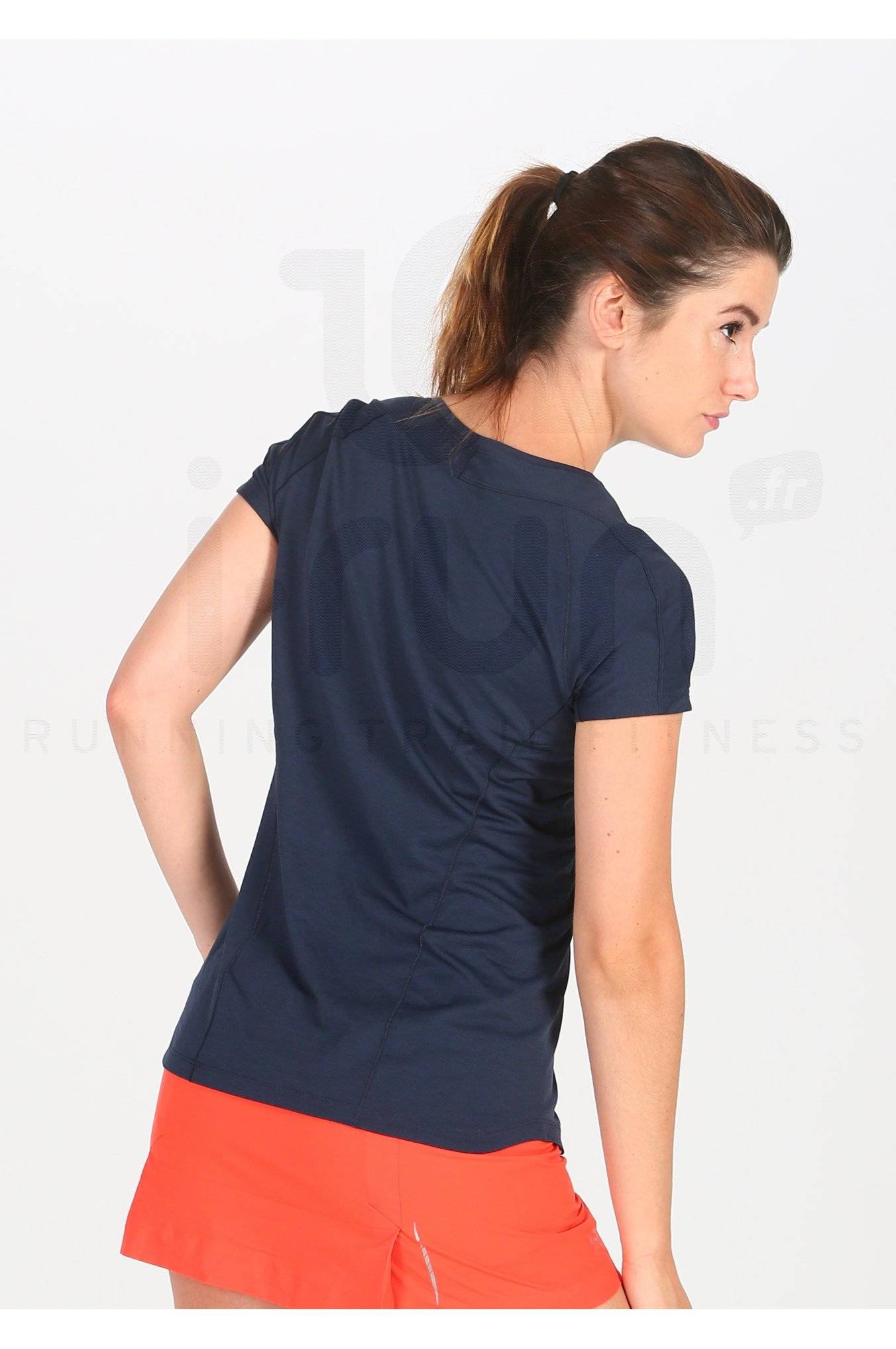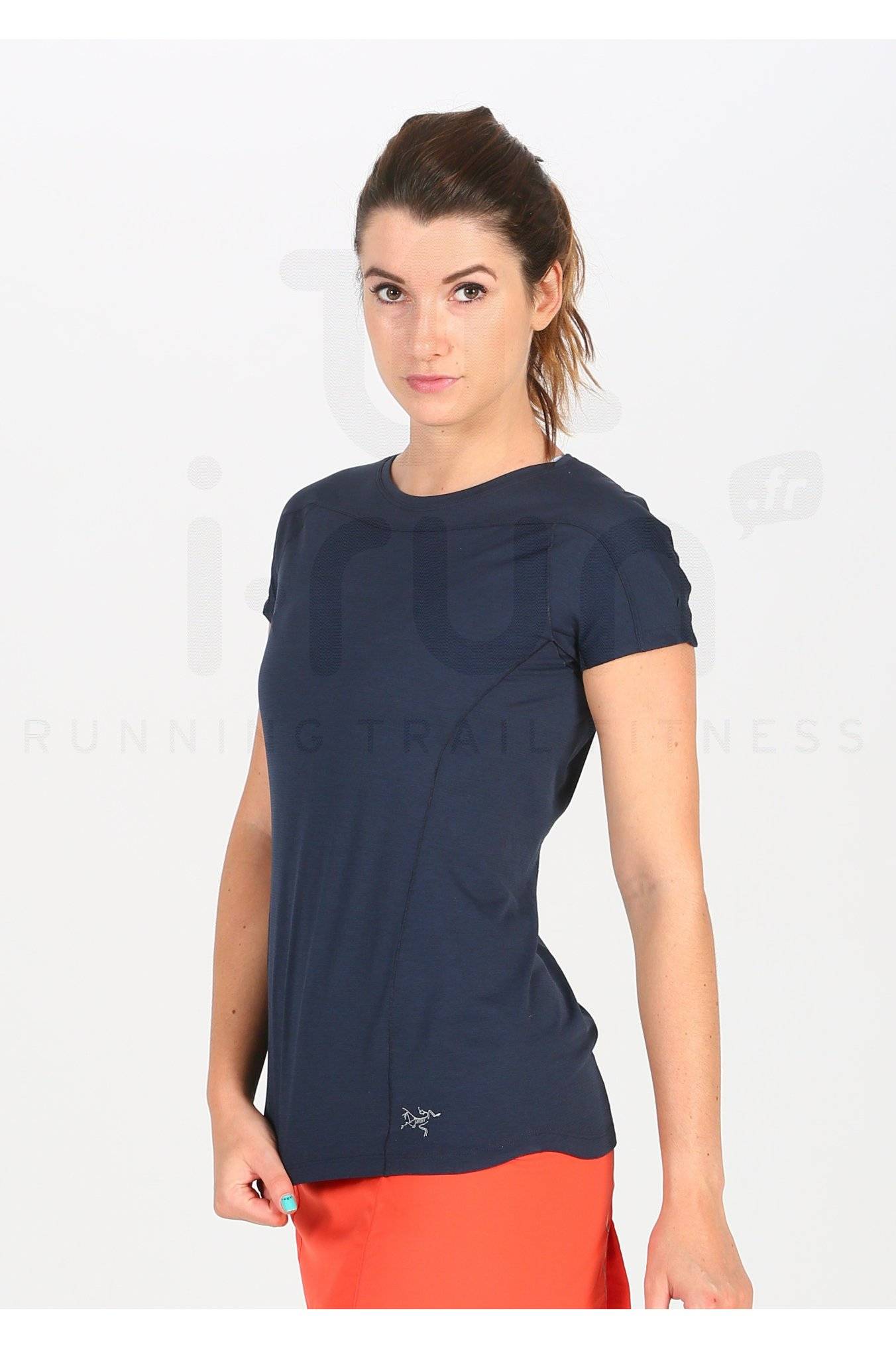Le tee-shirt manches courtes Arcteryx Taema Crew pour femme vous suit lors de vos sorties de trail par temps chaud.