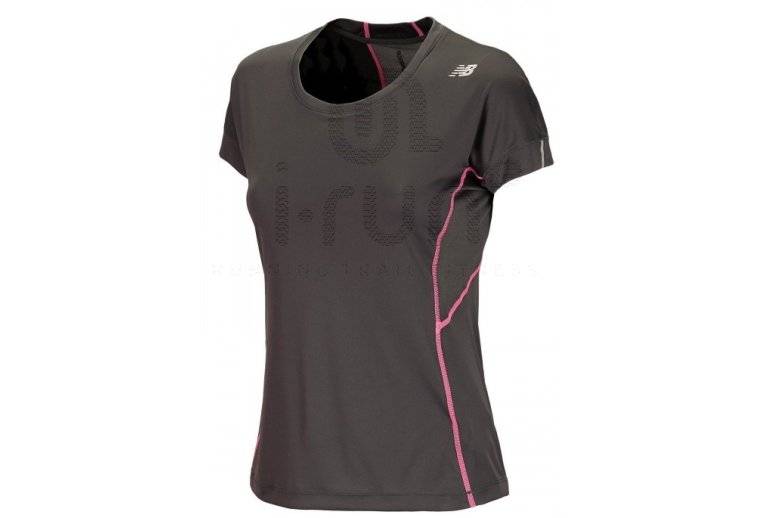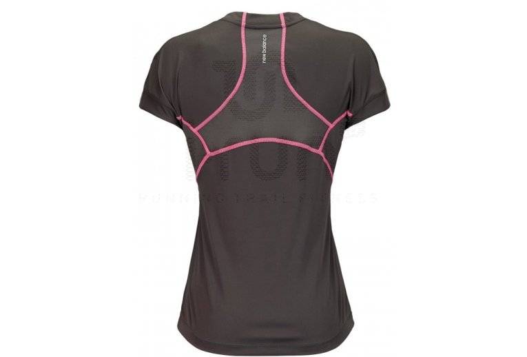 Le tee-shirt manches courtes New Balance Impact gris et rose pour femme (Collection printemps/été 2013) est idéal pour vos entraînements de course à pied par temps chaud. Ultra léger et respirant, il évacue la transpiration et vous garde au sec tout au long de votre séance.