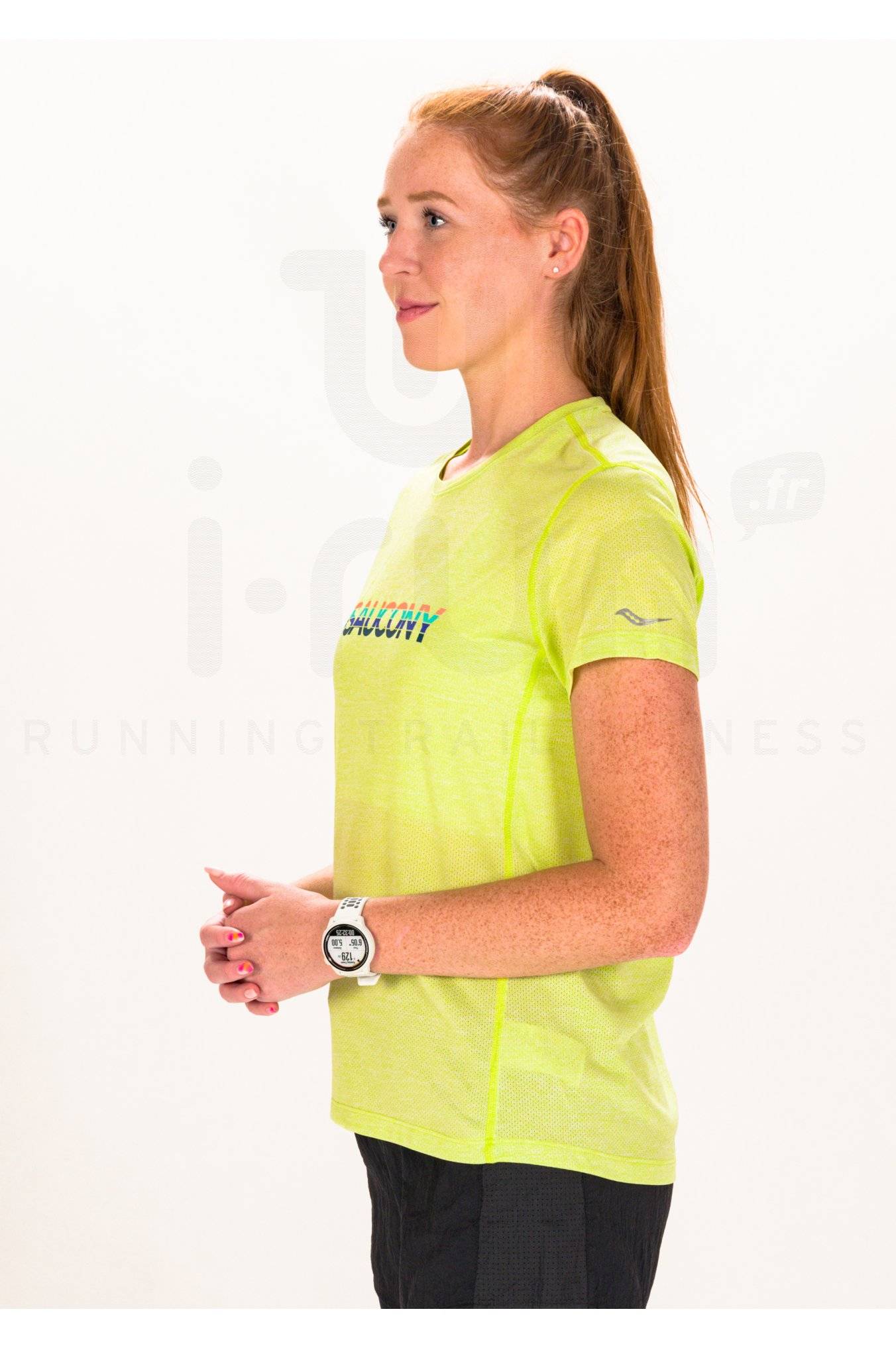 Le tee-shirt manches courtes Saucony Stopwatch Graphic pour femme vous promet une aisance maximale lors de vos sessions de running.
