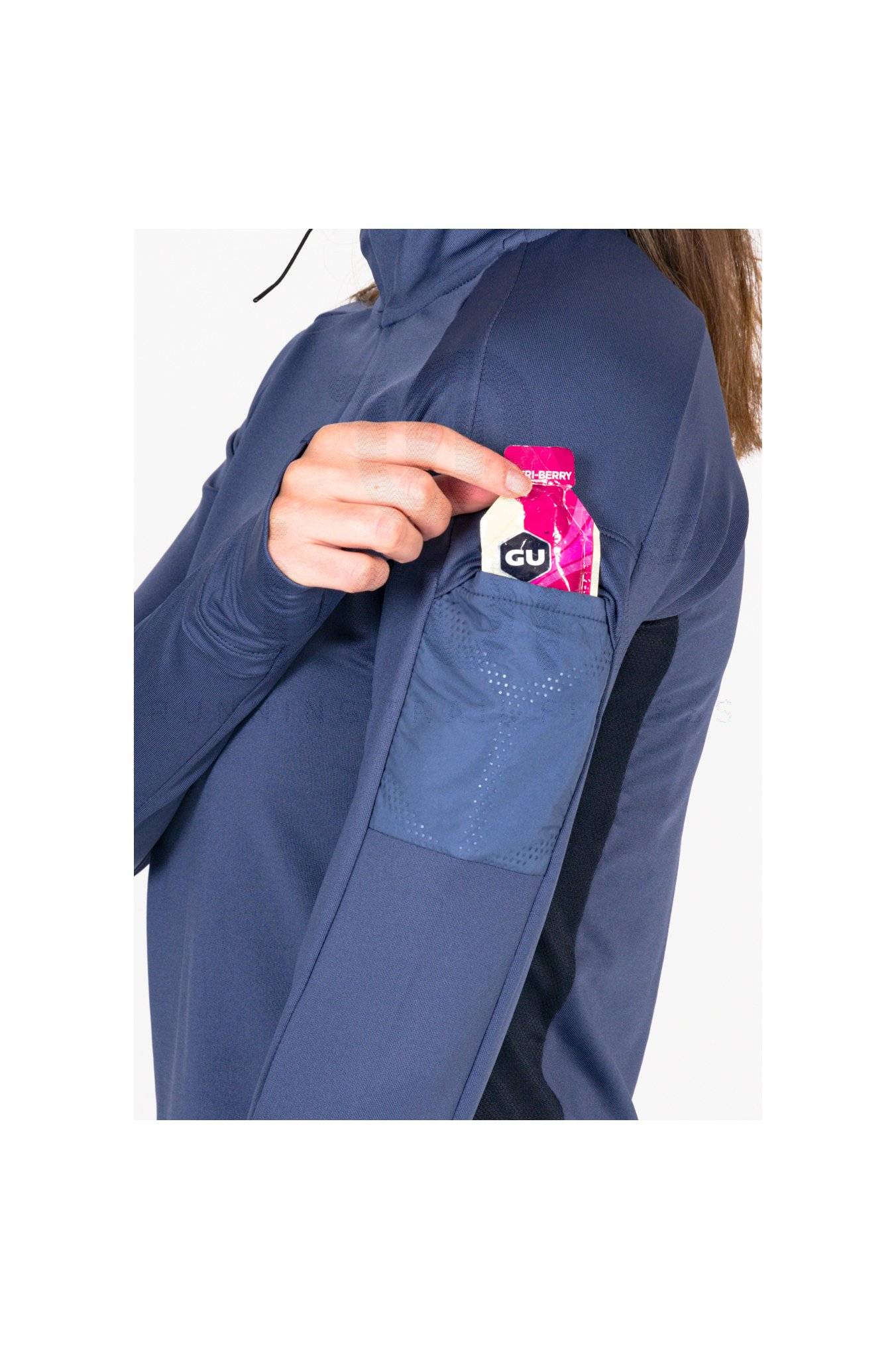 Le col montant vous protège du vent tandis que les manches avec rabats et passe-pouces gardent vos mains au chaud. Pratique, le demi-zip vous permet de moduler la ventilation.