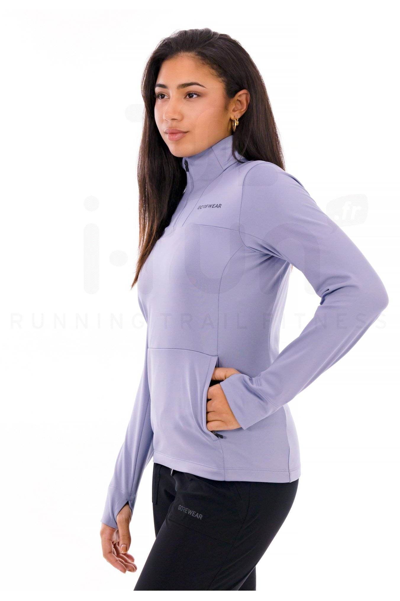 Des passes-pouces assurent une bonne tenue et protègent vos mains tandis que le 1/4 zip permet de réguler facilement l'aération.