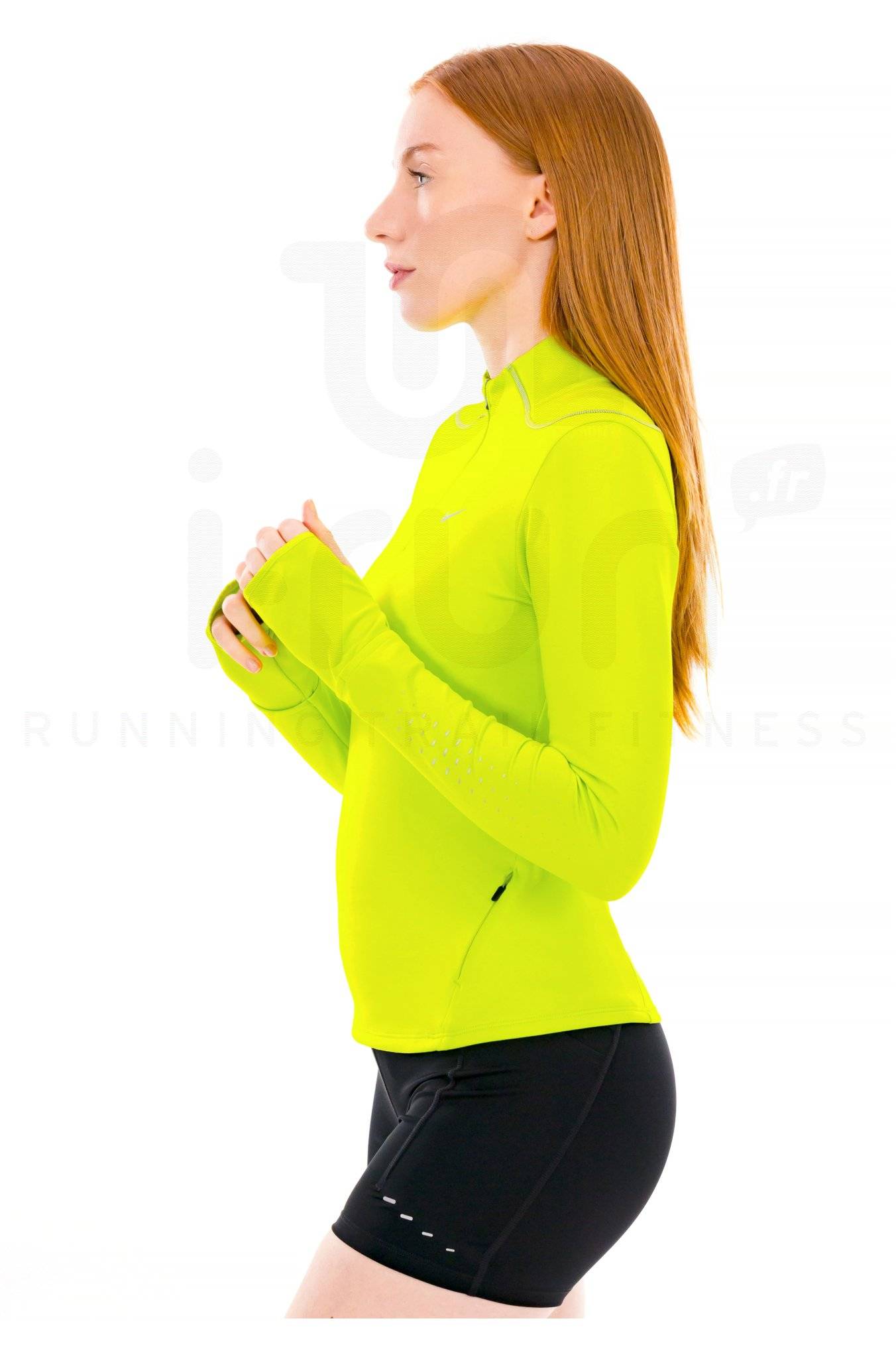 Les manches sont équipées d'ouvertures pour les pouces afin de maintenir le vêtement en place, et disposent d'une fenêtre pratique pour votre montre, afin de suivre vos performances sans contrainte.