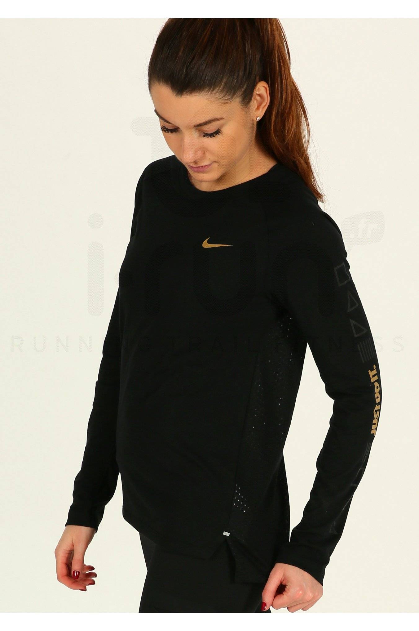 Le maillot manches longues Nike Tailwind pour femme vous apporte un grand confort lors de vos séances de course à pied.