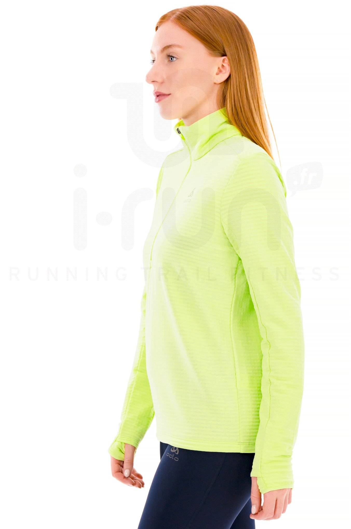Vos séances de course à pied par temps froid sont agréables avec le tee-shirt manches longues femme Odlo Essential Thermal 1/2 Zip.
