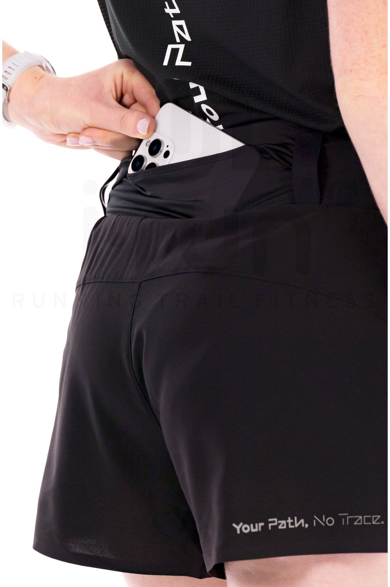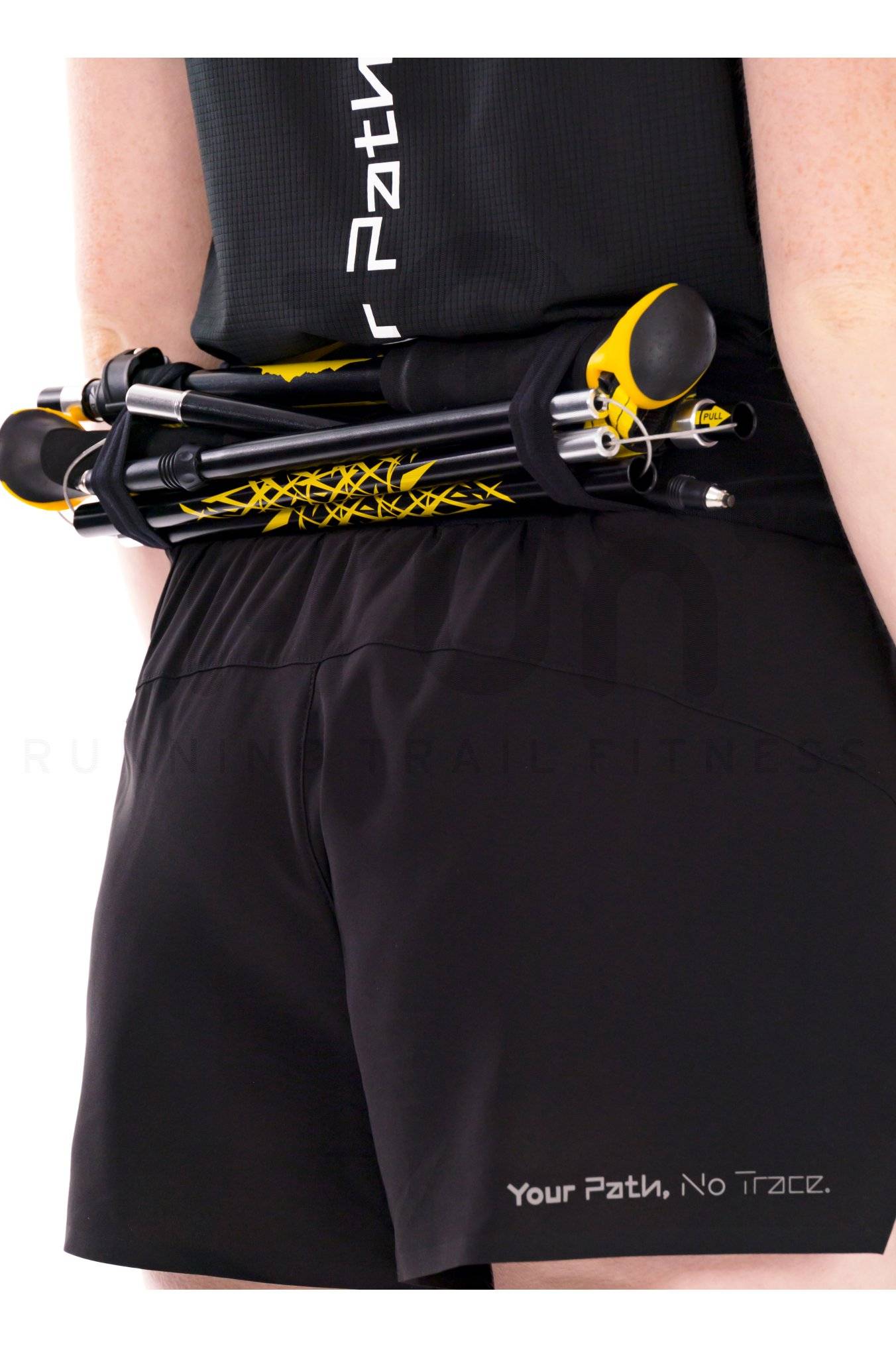 Sa large taille élastique vous assure un maintien idéal. Elle se dote de quatre poches qui accueillent vos essentiels et de boucles au dos qui transportent vos bâtons.