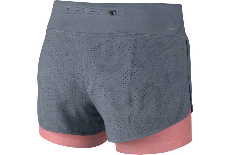 Le short Nike Rival Perforated 2en1 pour femme dispose d'un lien de serrage à la taille pour un ajustement optimal. La pochette zippée au dos ainsi que les deux pochettes intérieures vous donnent la possibilité de transporter vos petits objets.