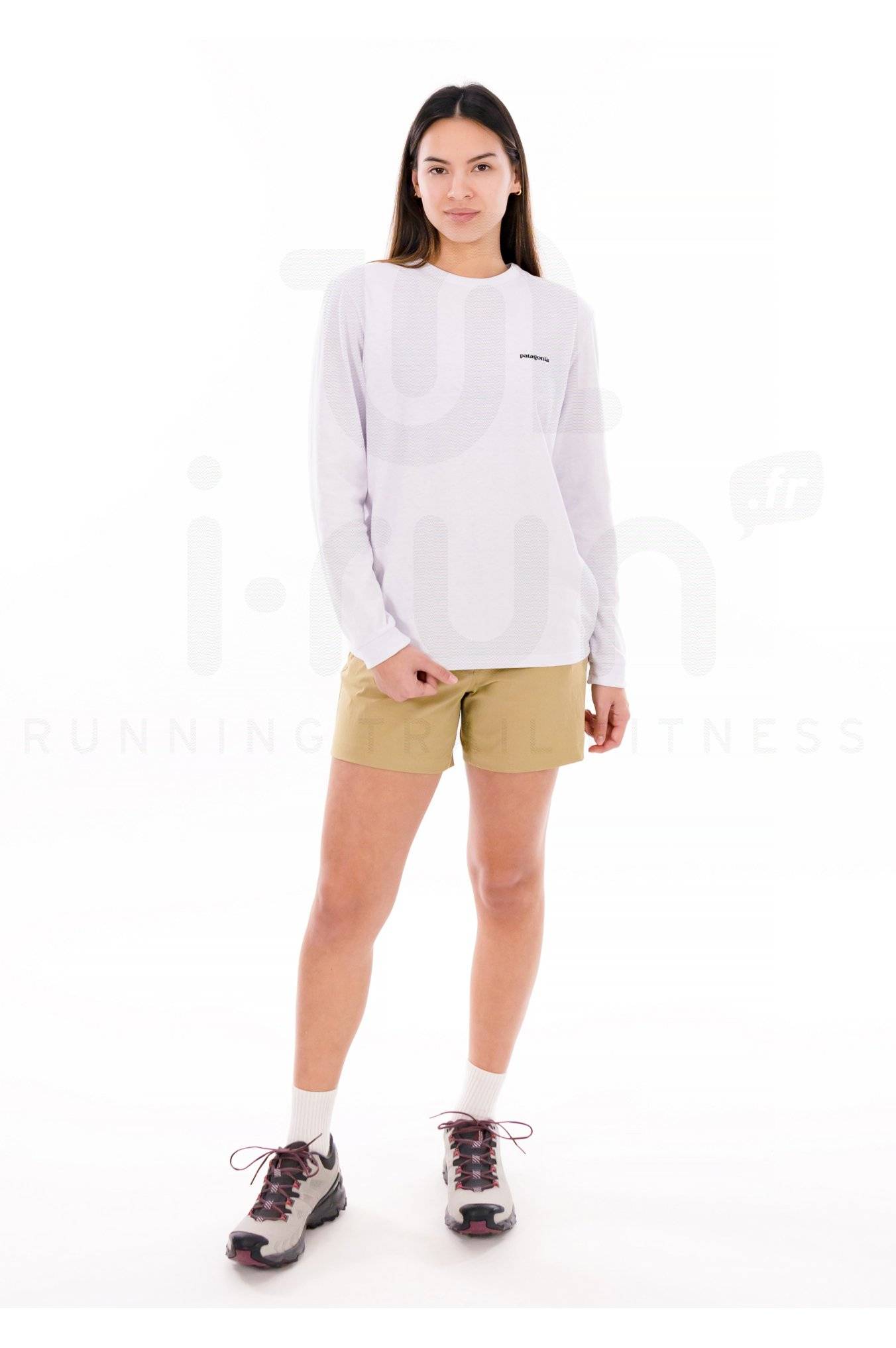 Polyvalent, le tee-shirt manches longues femme Patagonia P-6 Logo Responsibili-Tee contribue à votre bien-être lors de vos activités quotidiennes.