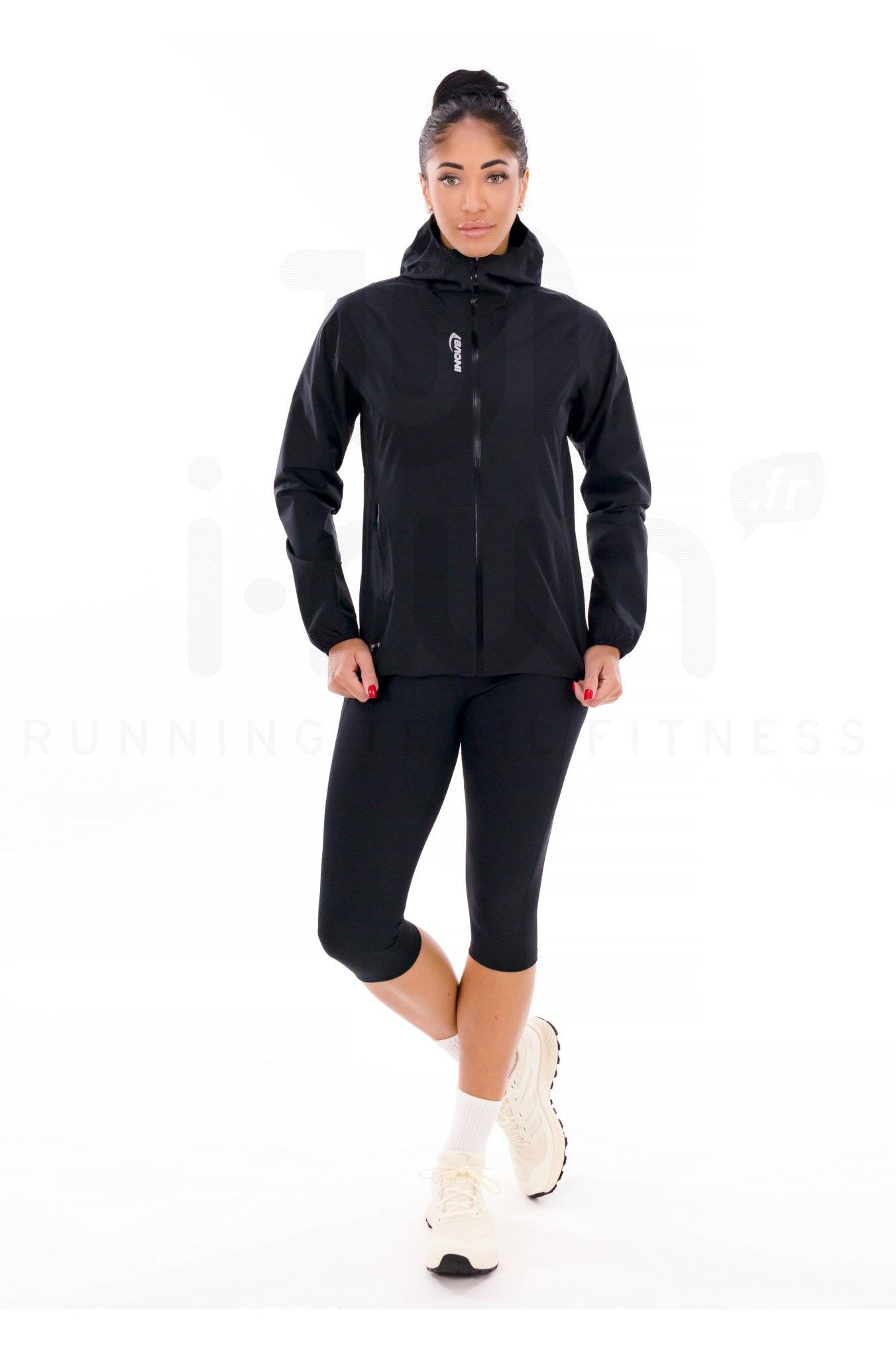 La veste femme Inov-8 Stormshell se présente comme une partenaire de choix durant vos sessions sportives outdoor par mauvais temps.