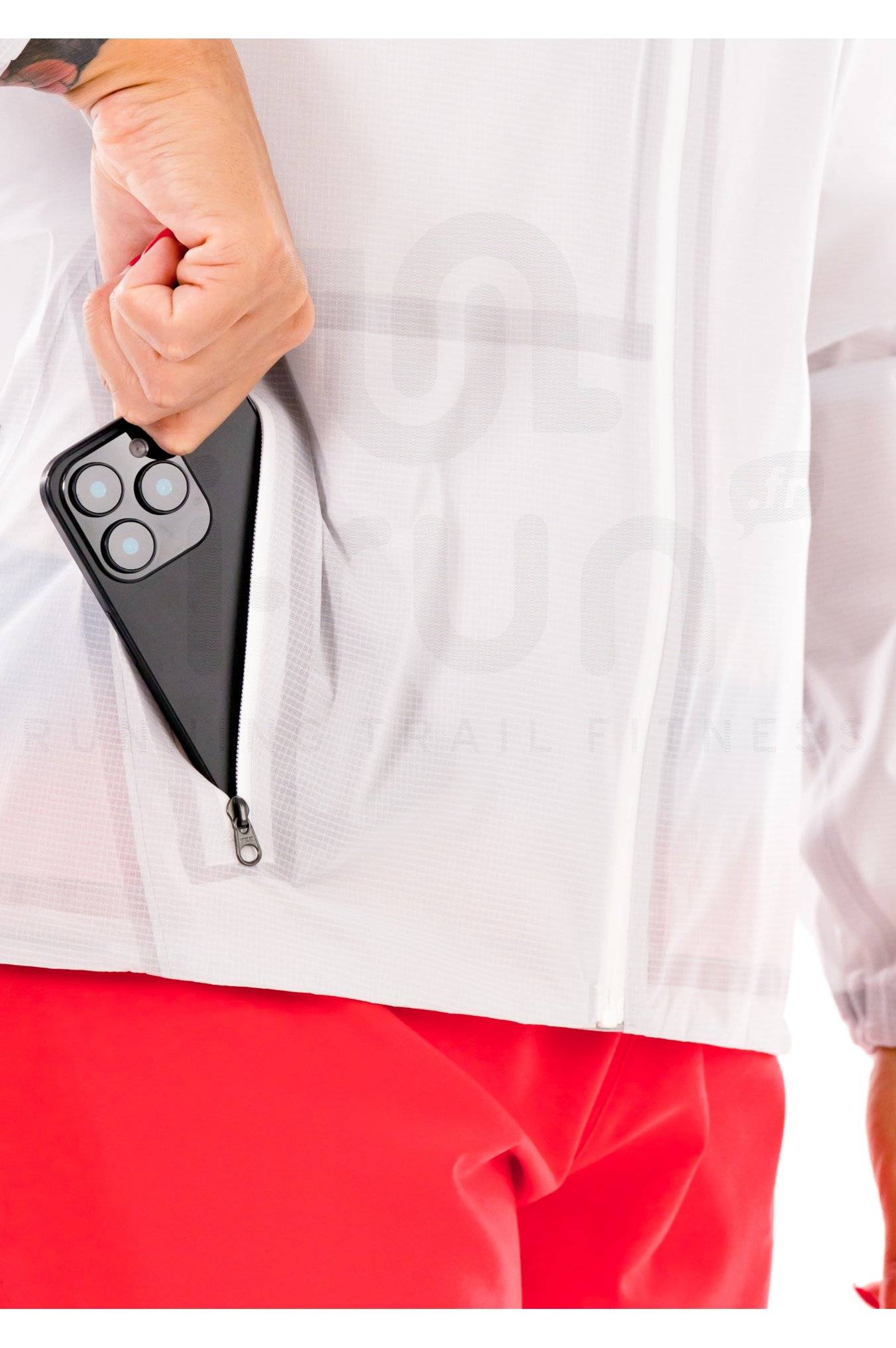 Une poche zippée au niveau de la poitrine accueille vos effets personnels en toute sécurité. Packable, ce modèle se transporte facilement dans son propre rangement.