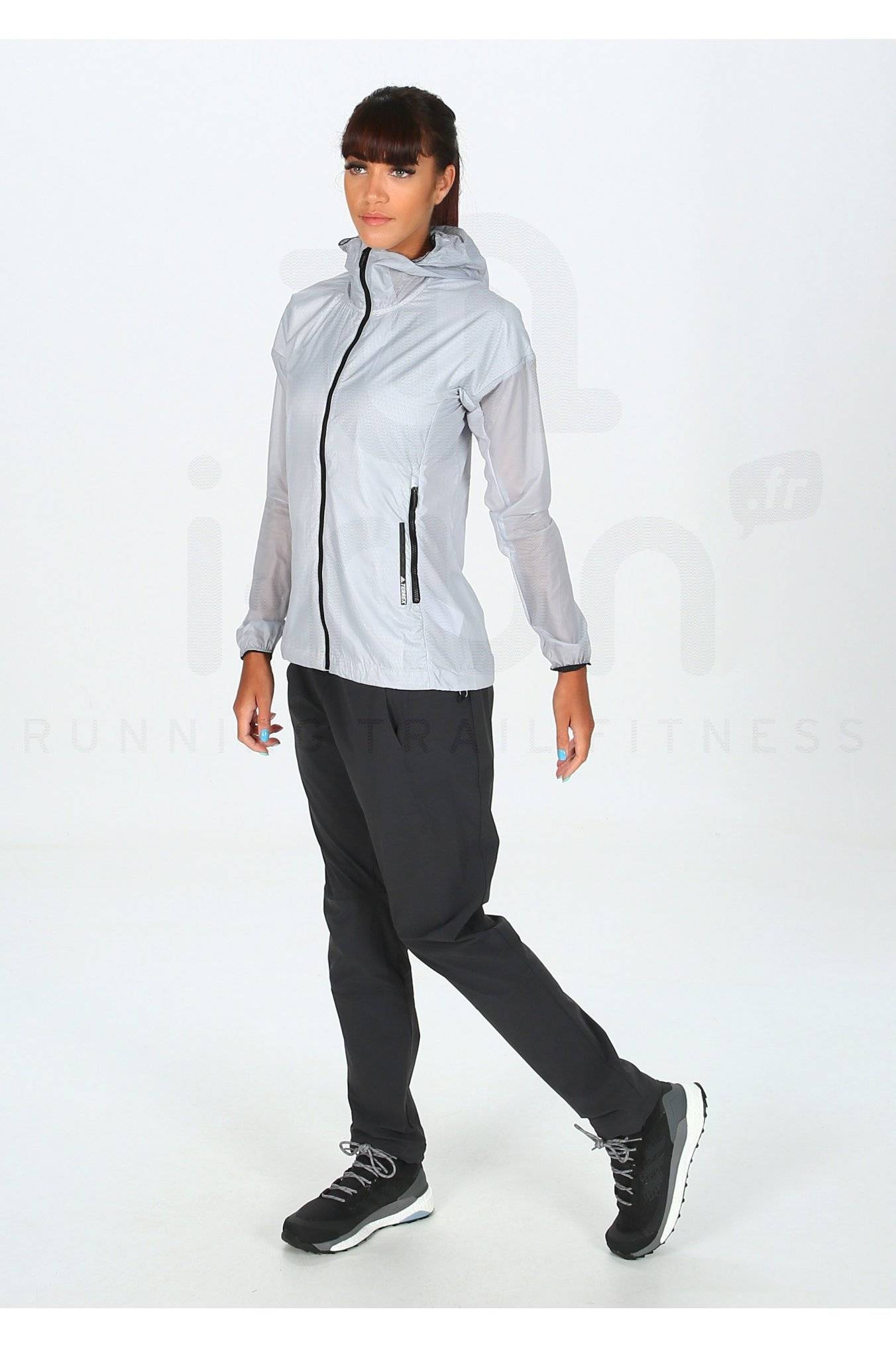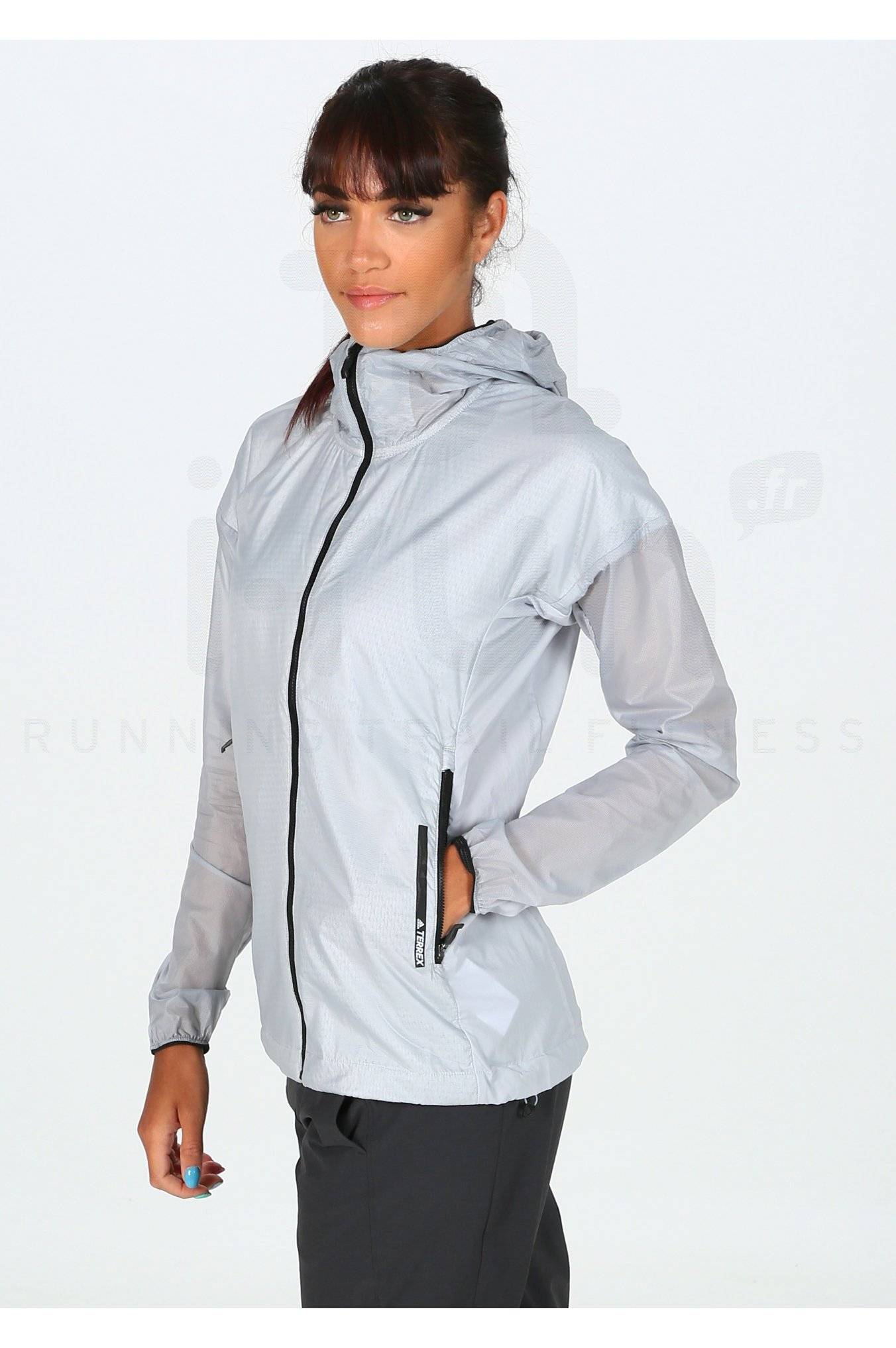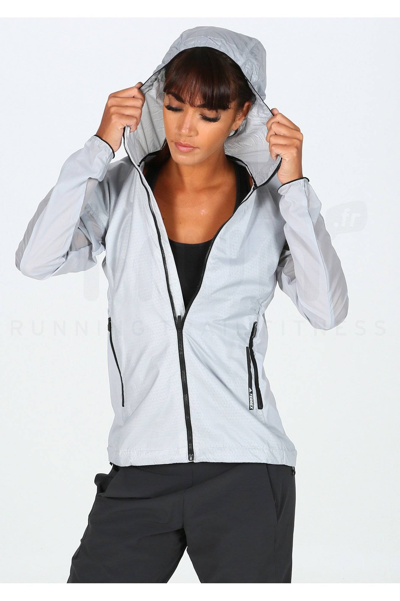 Profitez d'un grand confort et légèreté lors de vos entraînements ou compétitions de running avec la veste coupe-vent adidas Terrex Agravic Alpha Hooded Shield pour femme.