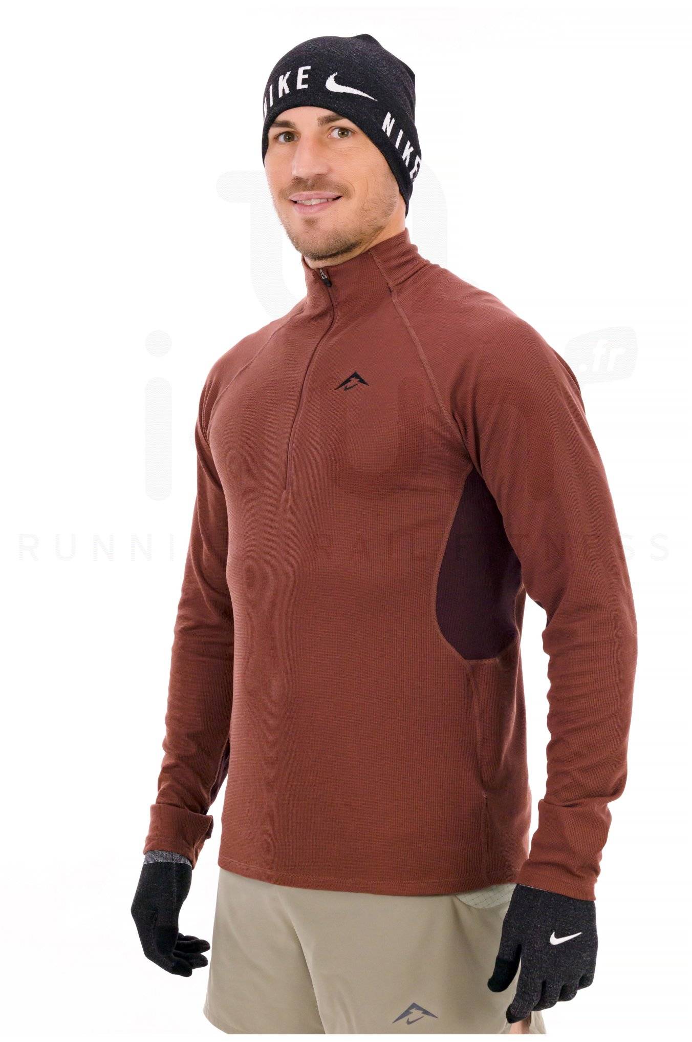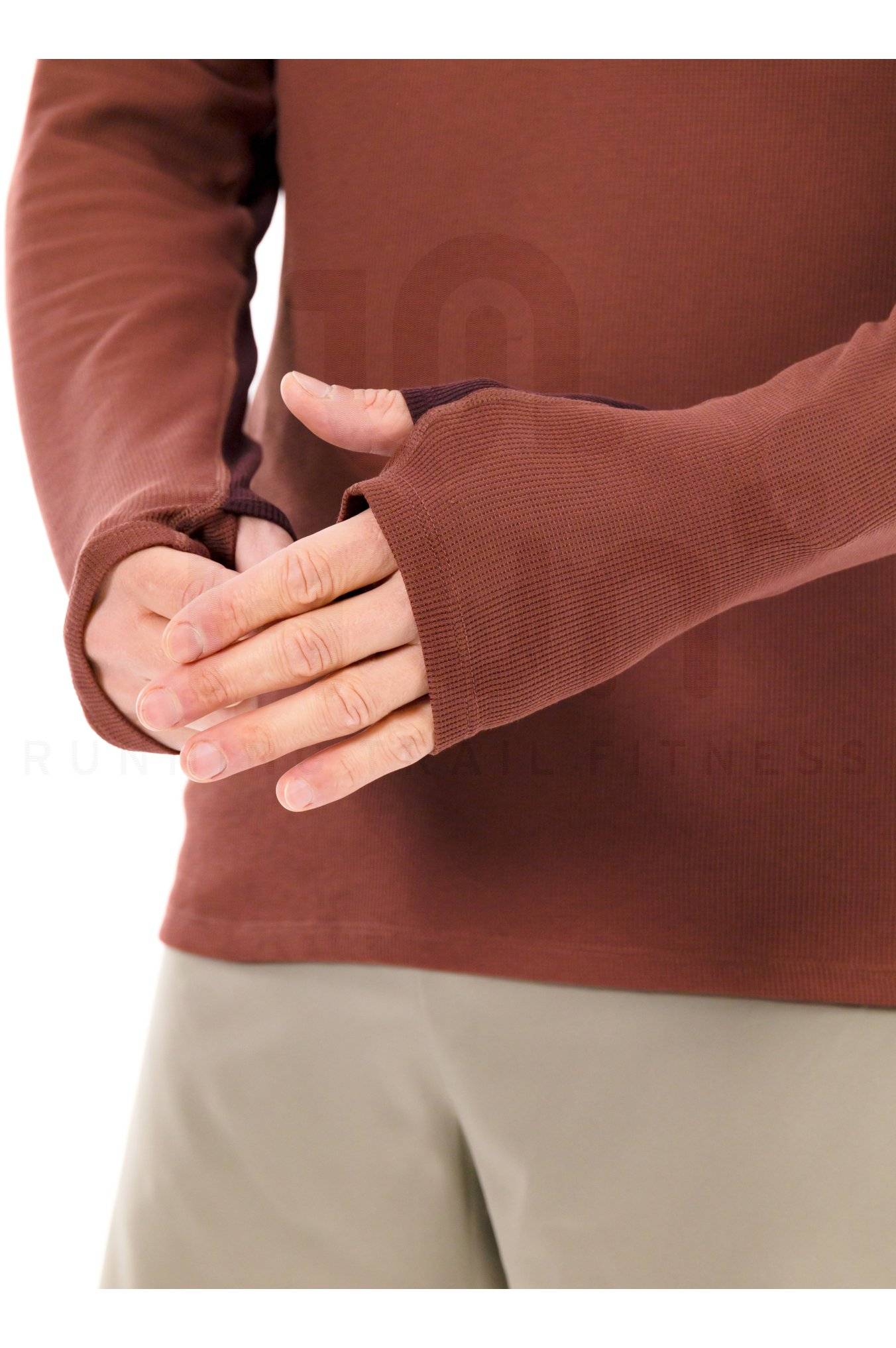 Le demi-zip permet de personnaliser l'aération selon vos besoins tandis que les passes-pouces assurent une bonne tenue.