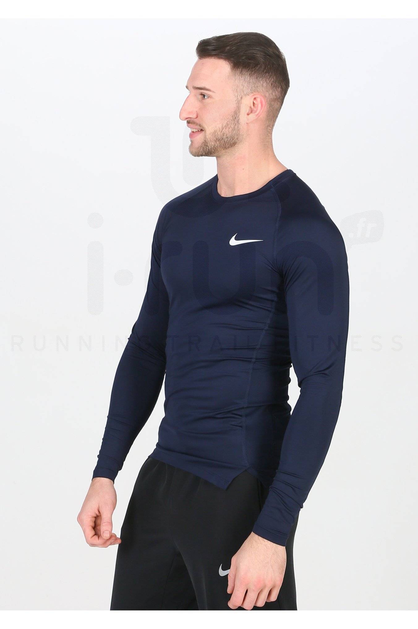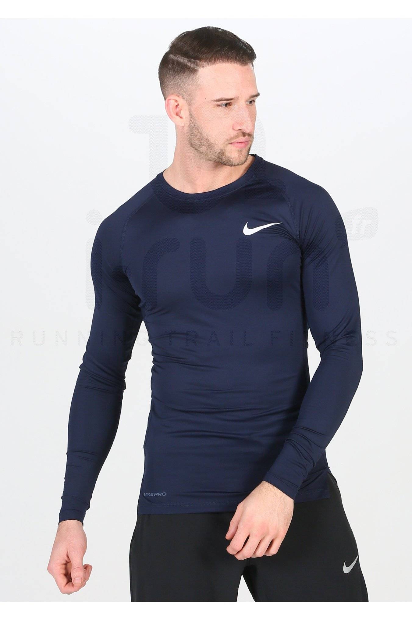 Le maillot manches longues Nike Pro pour homme vous accompagne lors de vos sessions de running.