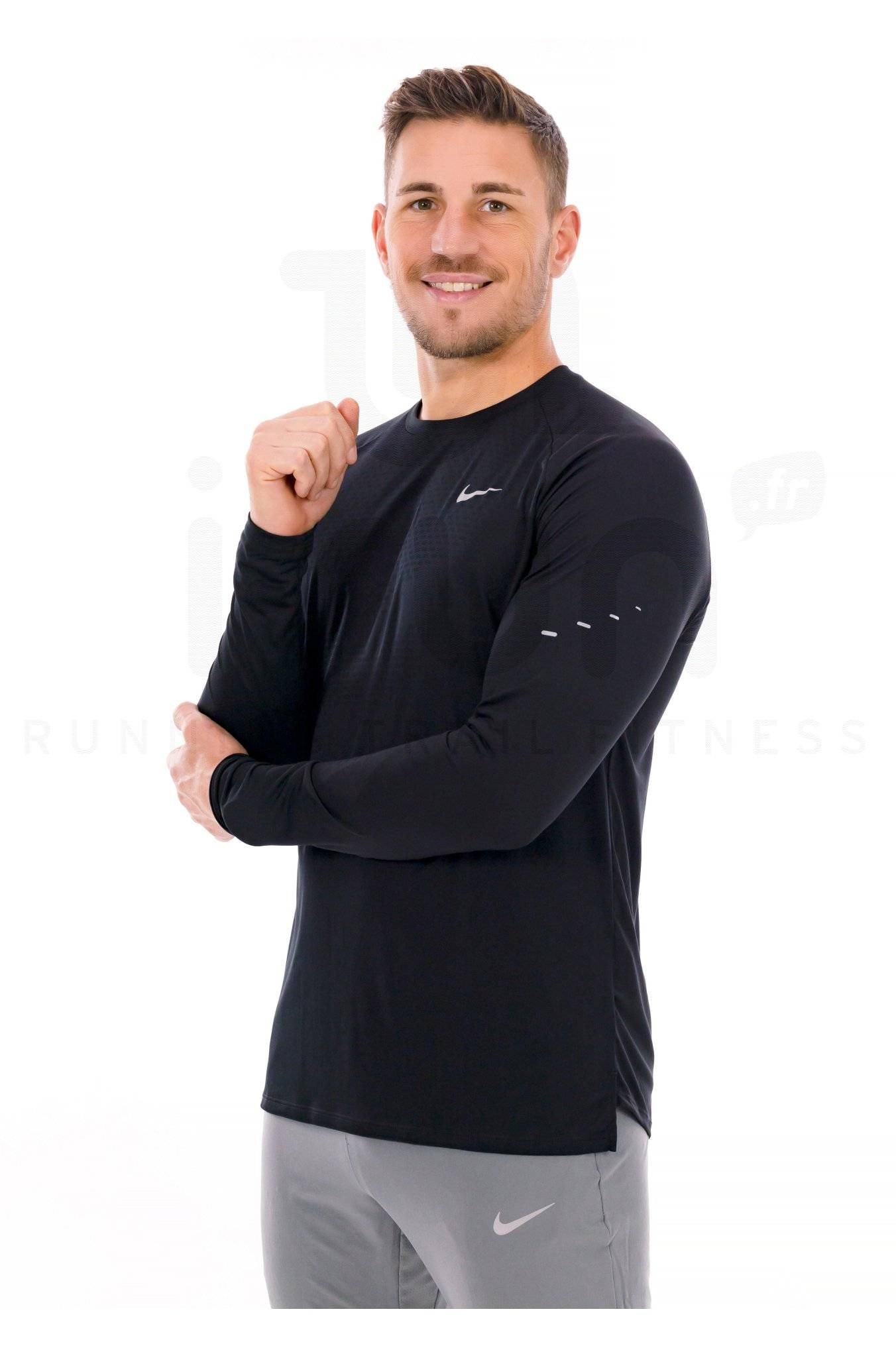 Léger et respirant, le tee-shirt manches longues homme Nike Stride convient parfaitement pour vos sessions de running par temps frais.