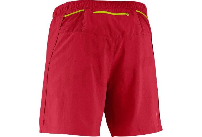 Pour vos entraînements et compétitions de courses à pied hors des sentiers battus, optez pour le short Salomon Trail rouge pour homme (Collection printemps/été 2014). Idéal par temps chaud, il se charge de la gestion de l'humidité et de l'évacuation de la transpiration grâce à son procédé ActiLite.