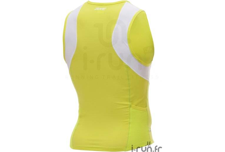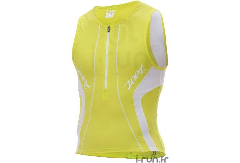 Vous avez des difficultés à trouver des vêtements spécialement conçus pour le triathlon? Voici le débardeur Zoot Performance Tri 1/2 zip jaune pour homme imaginé pour répondre aux besoins des tri-athlètes. La gamme Performance offre un excellent maintien musculaire du haut du corps pour ainsi ralentir la venue de la fatigue et améliorer votre endurance.