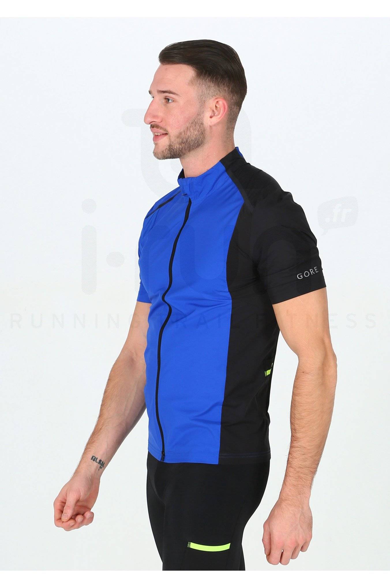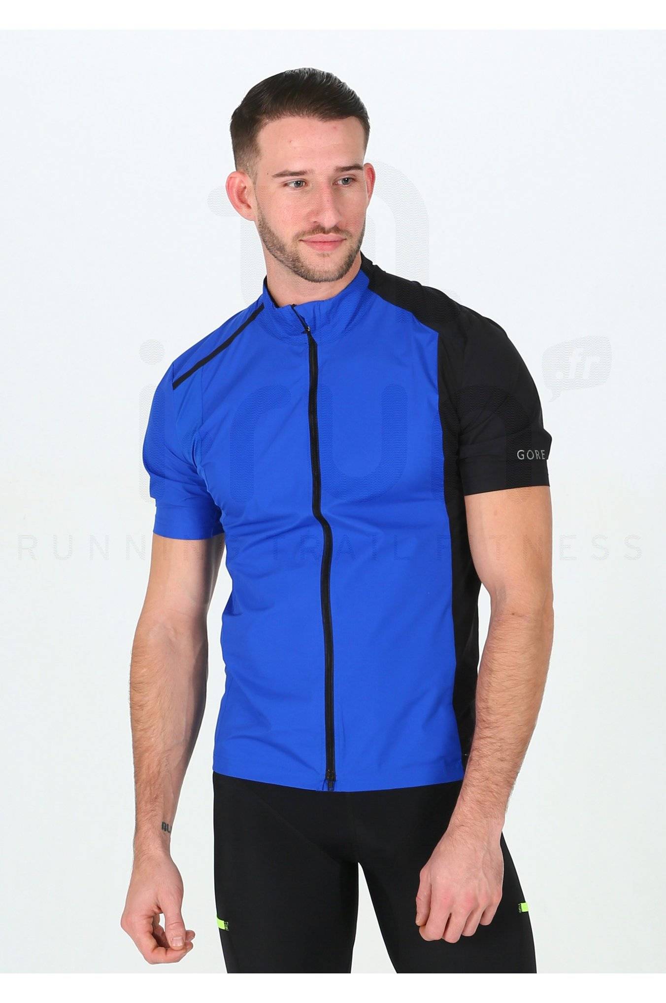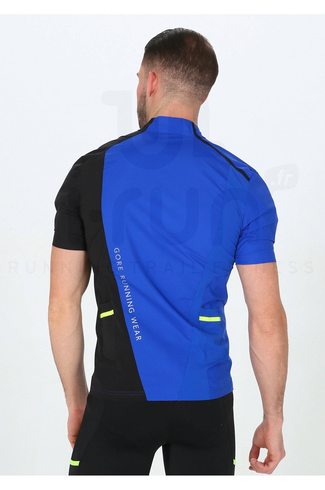 La veste manches courtes Gore Running Wear Fusion WindStopper Soft Shell Zip-Off bleue et noire pour homme (Collection Automne/Hiver) vous accompagne lors de vos sorties de running en couche intermédiaire ou en dernière couche.