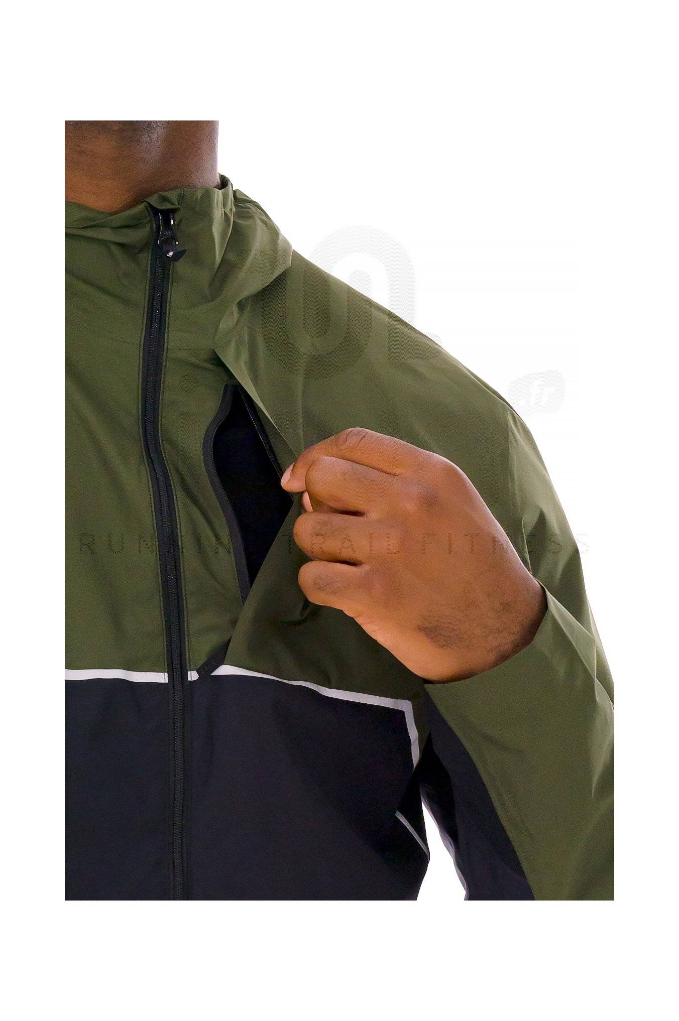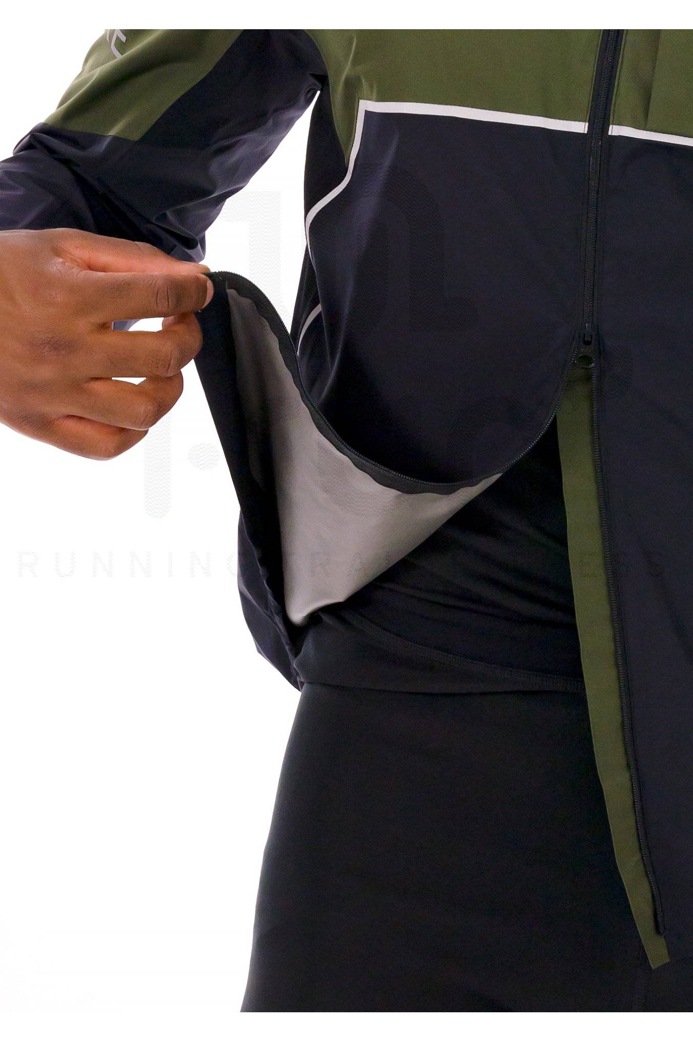 La capuche à visière intégrée possède un cordon de serrage pour un ajustement optimal tandis que le zip intégral vous permet de moduler votre aération selon vos besoins.