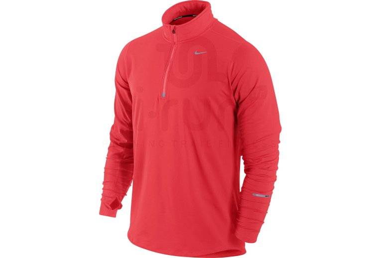 Trop froid pour mettre juste un tee-shirt, trop chaud pour mettre une veste? Le produit idéal est le maillot manches longues Nike Element 1/2 Zip rouge pour homme (Collection Printemps/Eté). Il est ultra confortable avec son tissu Dri-Fit doux et chaud qui évacue la transpiration pour vous laisser au sec et très respirant avec ses empiècements en maille aéré sous les bras. La technologie "Stay Warm" vous protègera du froid lors de vos entraînements de course à pied.