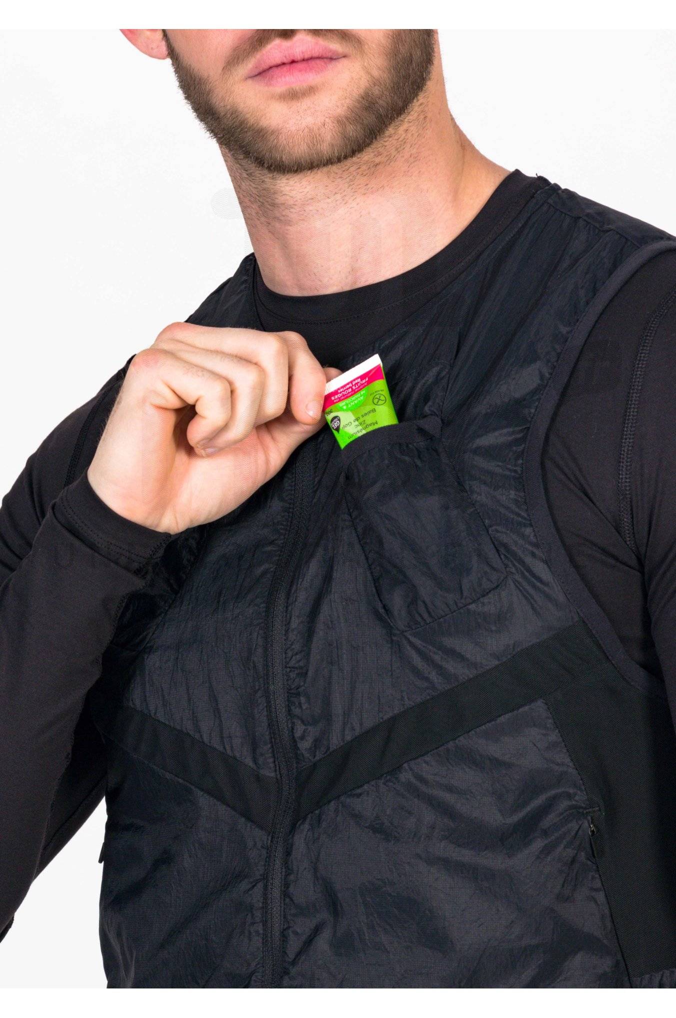 Vos effets personnels vous accompagnent pendant l'effort dans les deux poches latérales zippéesPratique, sa conception packable vous permet de la replier dans son rangement prévu à cet effet au dos.