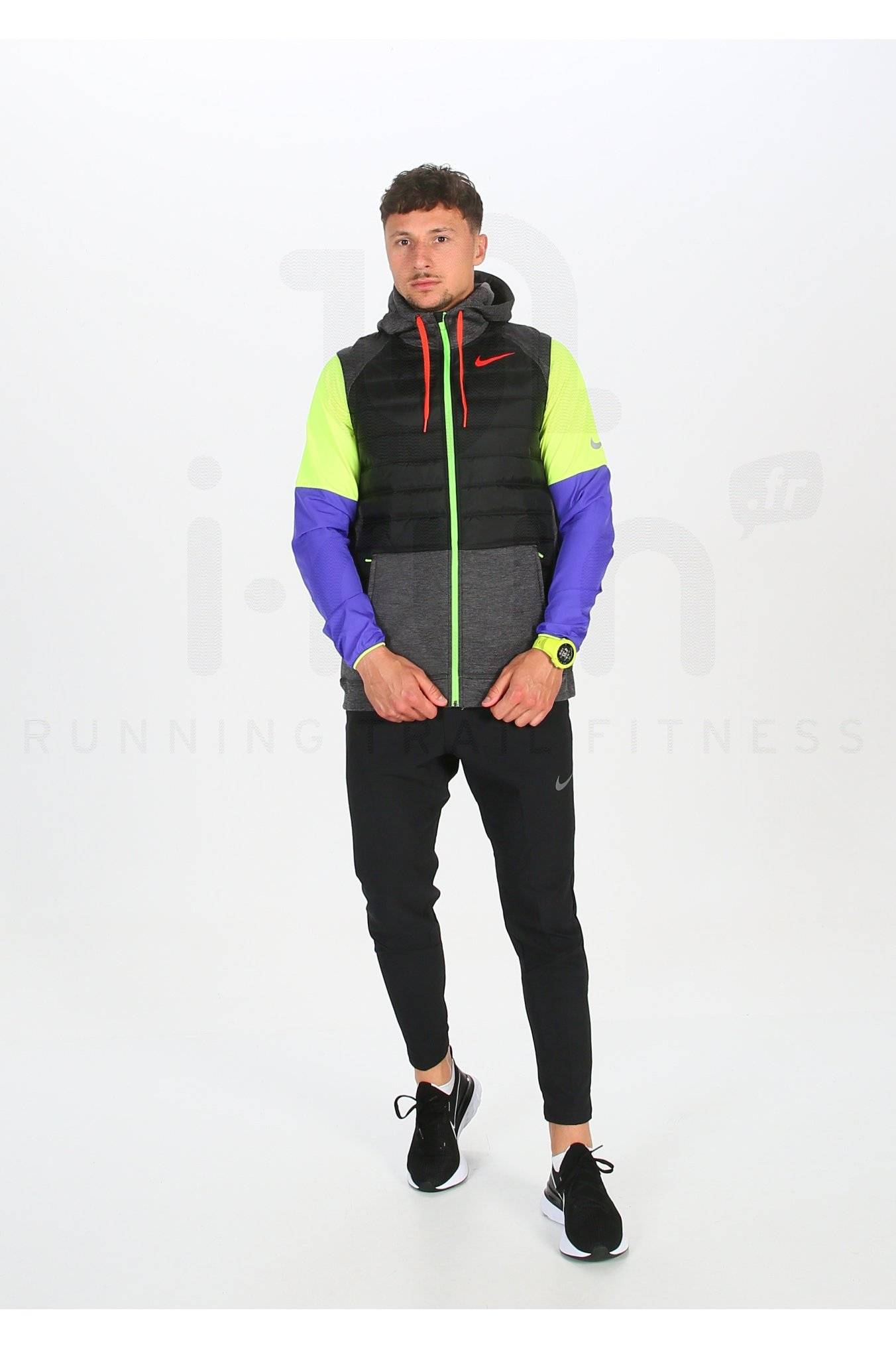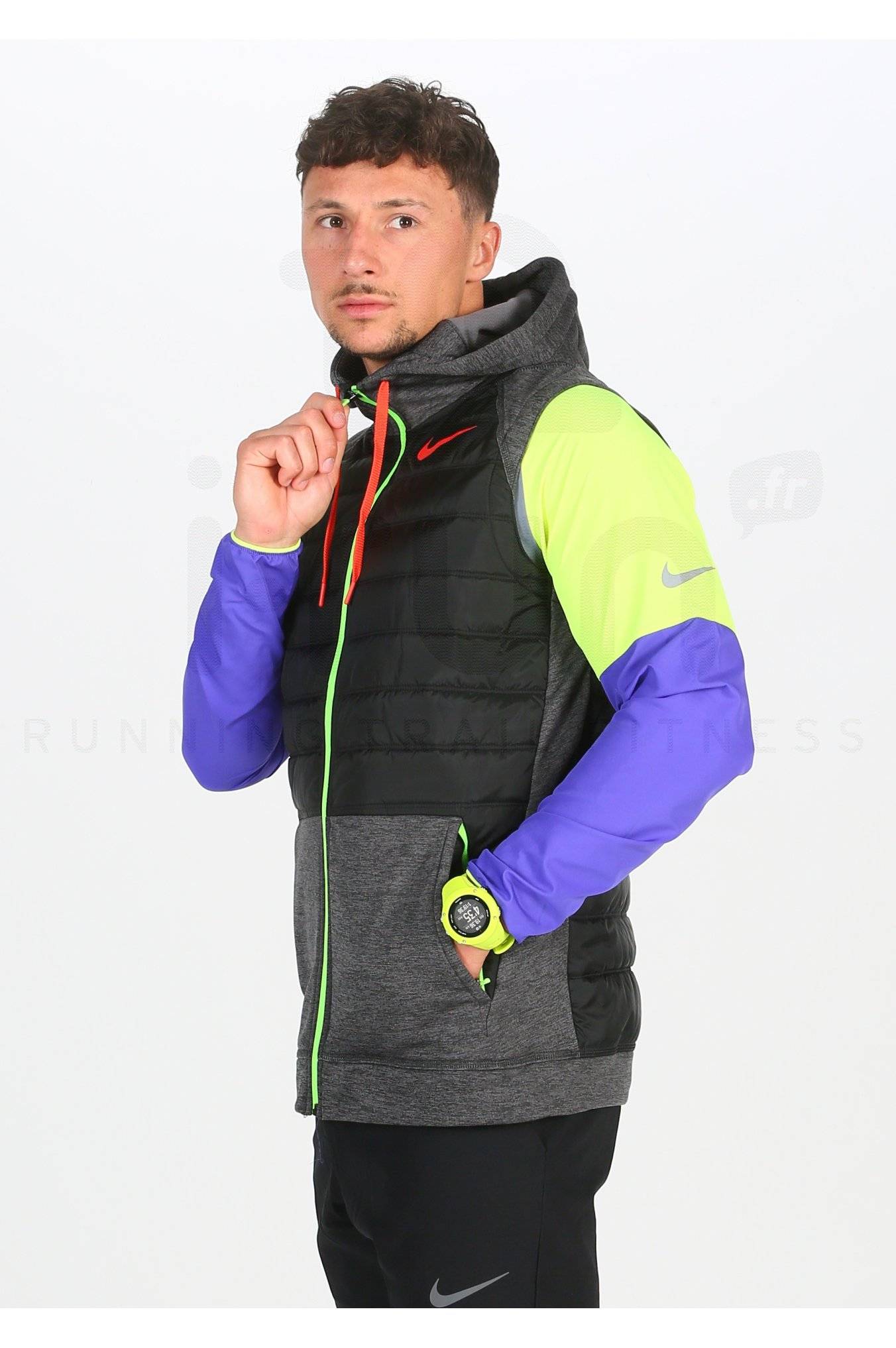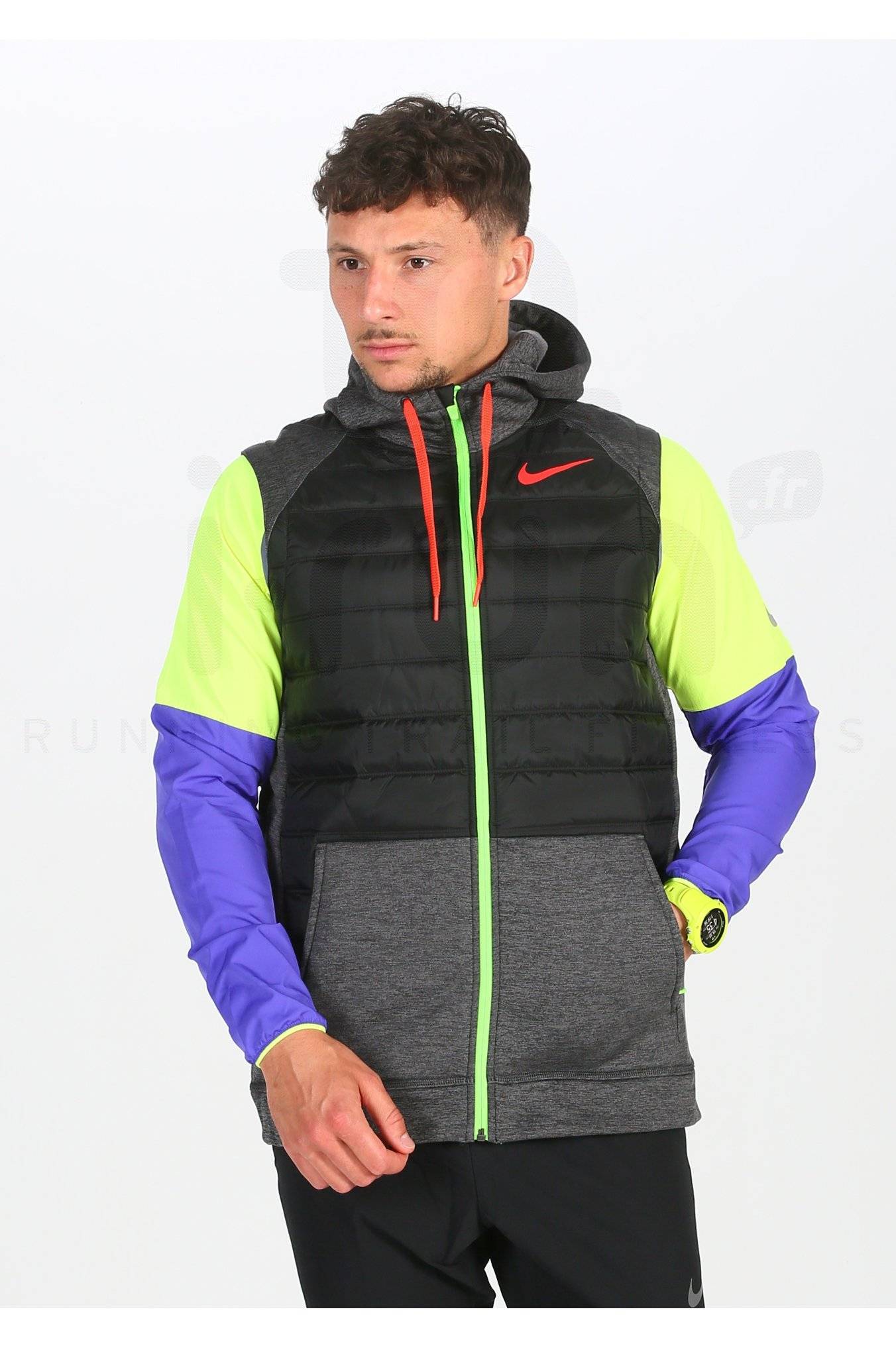 Des empiècements composés du tissu Nike Therma vous apportent un agréable source de chaleur en toutes circonstances. Vous restez ainsi la tête et les mains bien au chaud lors de vos sorties. L'avant et le dos bénéficient d'un garnissage synthétique afin de vous préserver des basses températures.
