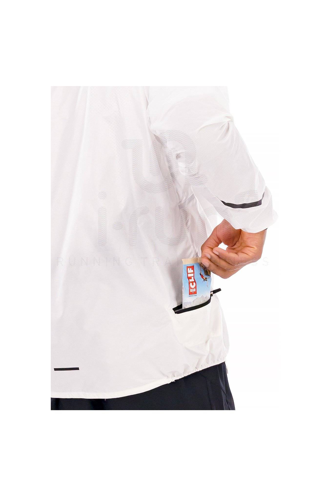 L'enduction déperlante sans PFC vous préserve de la pluie fine. Sa capuche forme un rempart supplémentaire tandis que le zip intégral vous permet de moduler la ventilation.
